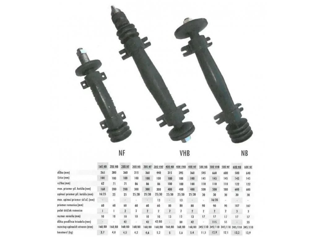 - masívne liatinové príruby k upnutiu pílového kotúča