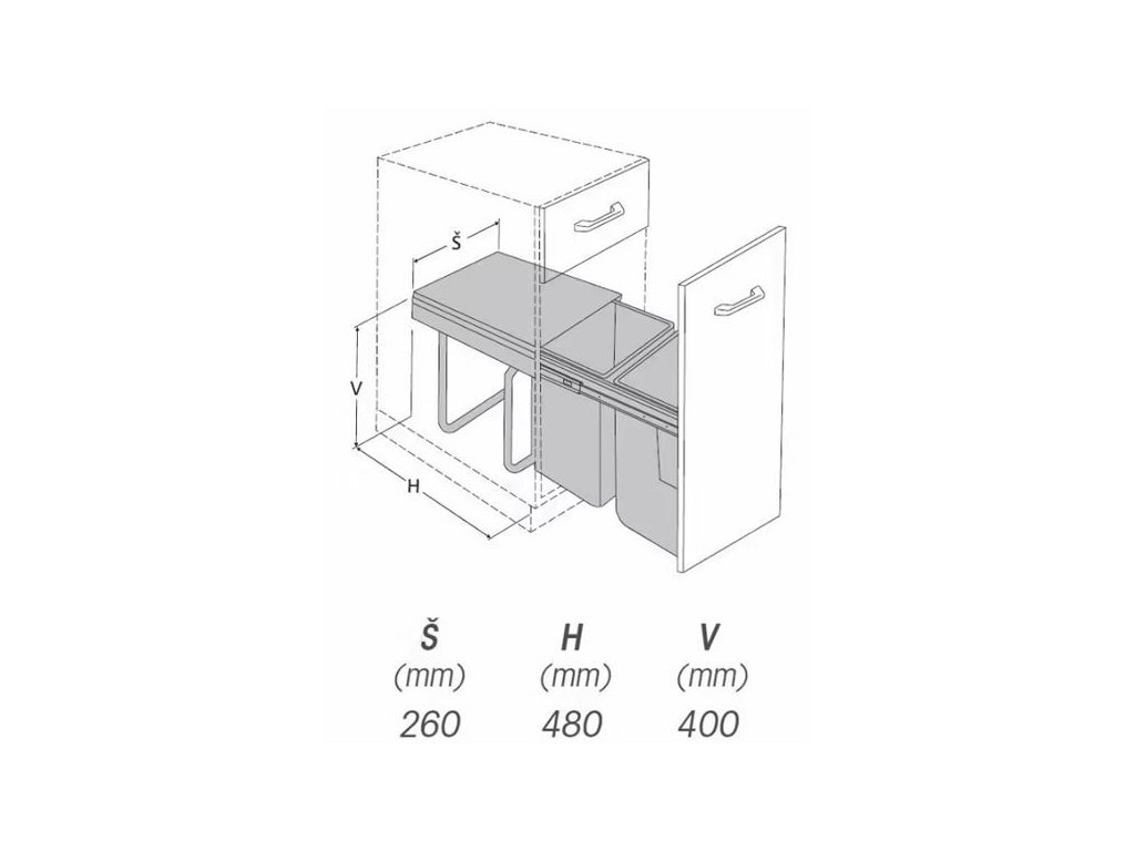 IDEAL 1007110602 Výsuvný odpadkový kôš 30cm 1x20+1x10L šedý plast na dierka