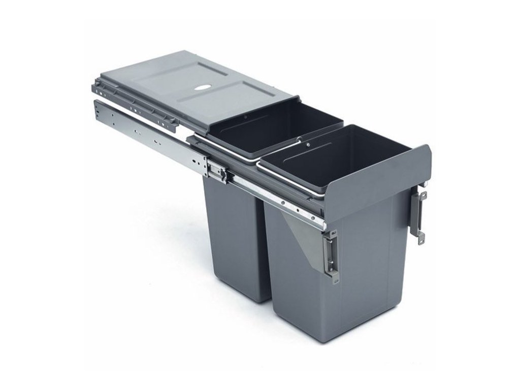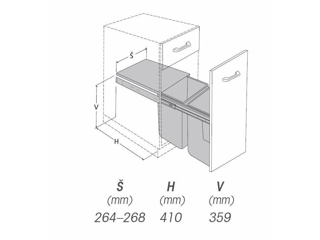 Ideal 1007168602 Výsuvný odpadkový kôš, 2 x 11 l, šedý plast na dierka 30 cm