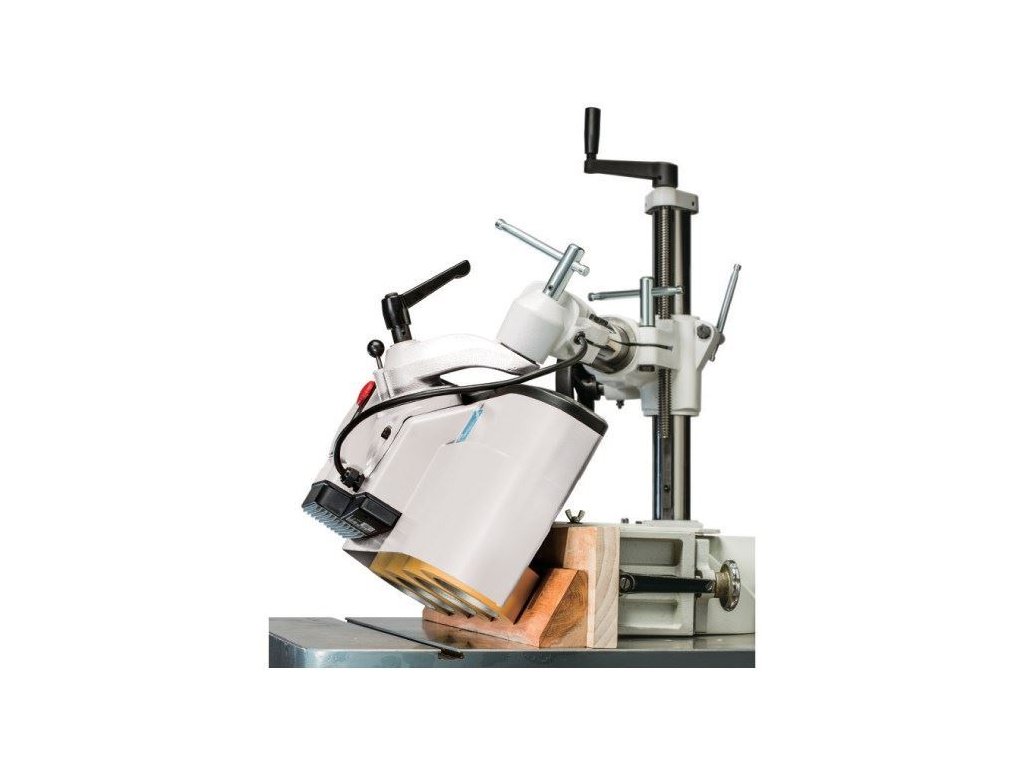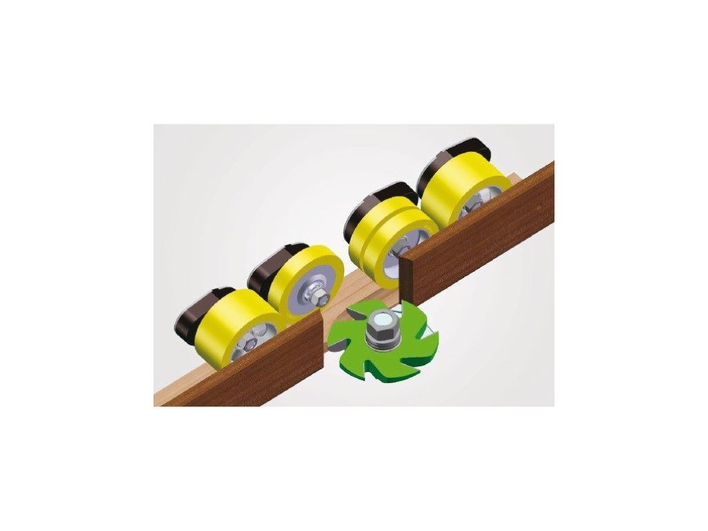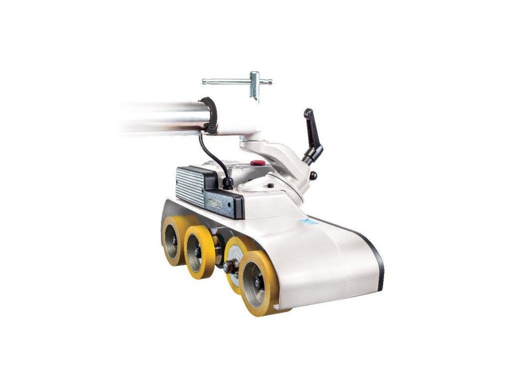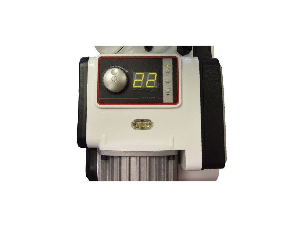 Podávač je osadený najmodernejším DC servo motorom s príkonom 400 W a s plynulou reguláciou posuvu. Ušetrí viac než 50 % nákladov na elektrickú energiu pri zachovaní točivého momentu hlavne pri nižších rýchlostiach v zrovnaní s podobnými veľkosťami podávačov s bežným motorom okolo 750 W. Už žiadna demontáž krytu a výmena ozubených kolies. Jednoducho si navolíte požadovanú rýchlosť na digitálnom ovládači v rozsahu 2–22 m/min. Perfektne odpružené rolne priemeru 120 mm a šírky 60 mm majú výbornú priľnavosť a skvelo se vyrovnávajú s nerovnosťami. Pokiaľ sa potrebujete dostať bližšie k nástroju, je možné štandardnú koleso nahradiť špeciálnym úzkym kolesom šírky 25 mm, ktoré sa dá dokúpiť ako doplnok.