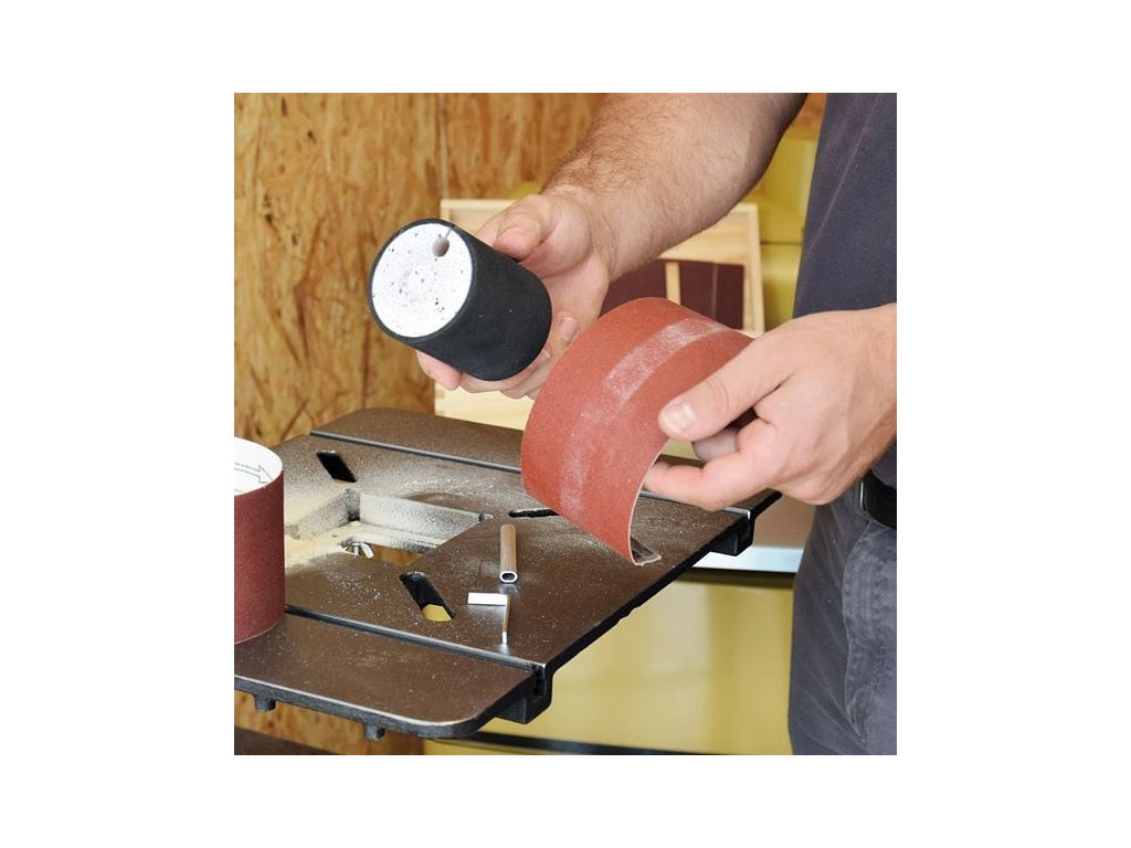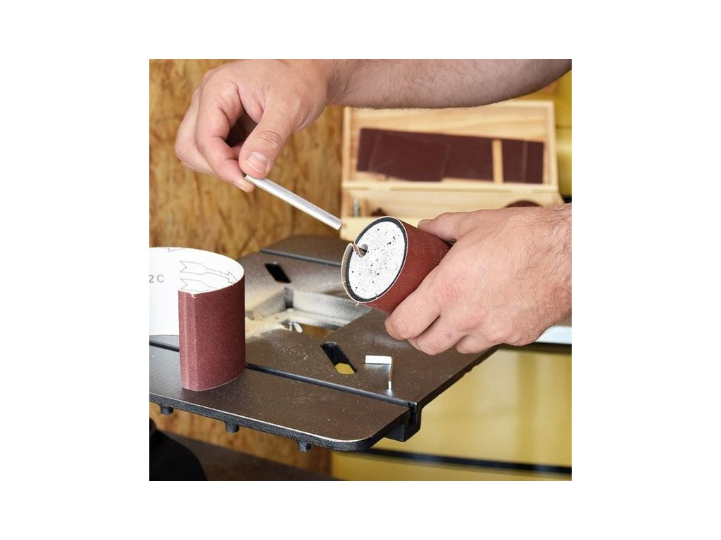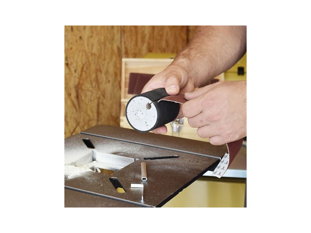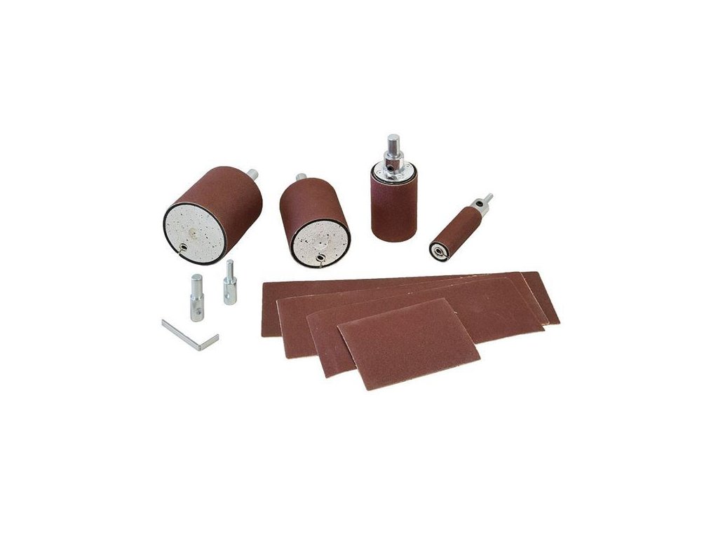 Sada 4 kusov brúsnych valčekov je určená pre ľahké a rýchle dosiahnutie dokonale hladkých povrchov pri všetkých zakrivených a gulatých dielcov. Brúsne valčeky majú praktický upínací systém pre ľahkú výmenu pásu. Odporúčame použiť len brúsne plátno, pri papieroch môže dochádzať k častejšiemu roztrhnutiu. Na každý brúsny valček môže byť použitý tŕň podľa veľkosti skľučovadla Vašej vŕtačky. S brúsnymi valčekmi sa dá pracovať v stojanovej vŕtačke. Menšie priemery 25 a 53 mm môžete použiť aj v ručnej vŕtačke. Odoporučené otáčky 1000–1500 ot./min. podľa priemeru valčeku a materiálu. Malý priemer -> vyššie otáčky, väčší priemer -> nižšie otáčky.