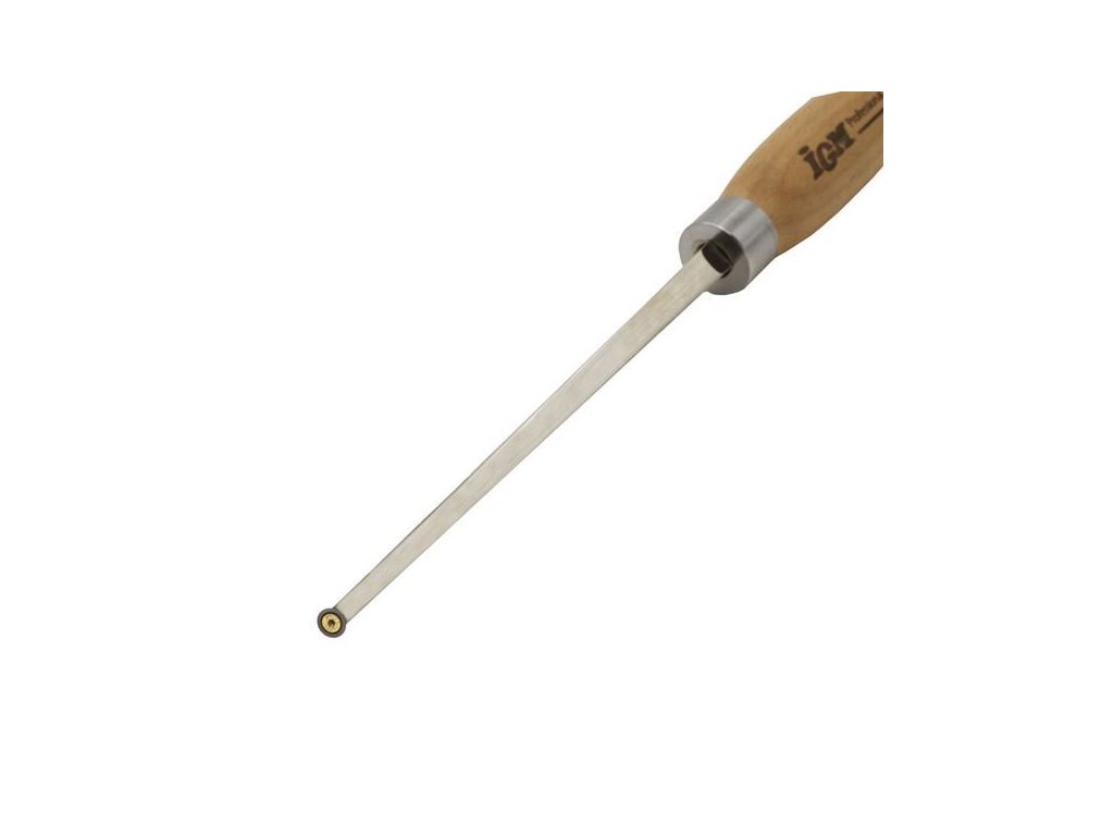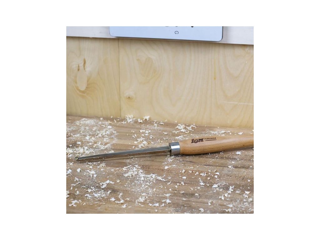 IGM Sústružnícke dláto na dutiny HW Chrome slúži na sústruženie dutých nádob, ktoré je potrebné vyhĺbiť cez úzke hrdlo (misy, vázy a poháre). Dláto je vhodné pre začiatočníkov, aj skúsených sústružníkov. Na výber sú 3 typy dlát – rovné, zahnuté a silne zahnuté. Každé z týchto dlát Vám umožní určitý uhol vyhĺbenia. Plochá hrana oceľového krku, ktorú je možné oprieť o opierku sústruhu, a masívna ergonomická rukoväť Vám poskytnú jednoduchšie a stabilnejšie sústruženie. Rezná hrana je vyrobená z tvrdokovu s vysokou životnosťou a nemusí sa ostriť. Keď sa hrana opotrebuje, stačí ňou pootočiť. Akonáhle je hrana po celom obvode tupá, celú ju vymeňte. Tieto dláta vytvárajú veľmi hladký povrch, ktorý nevyžaduje komplikované brúsenie. Dubová rukoväť je 390 mm dlhá. Celková dĺžka je 605 mm.