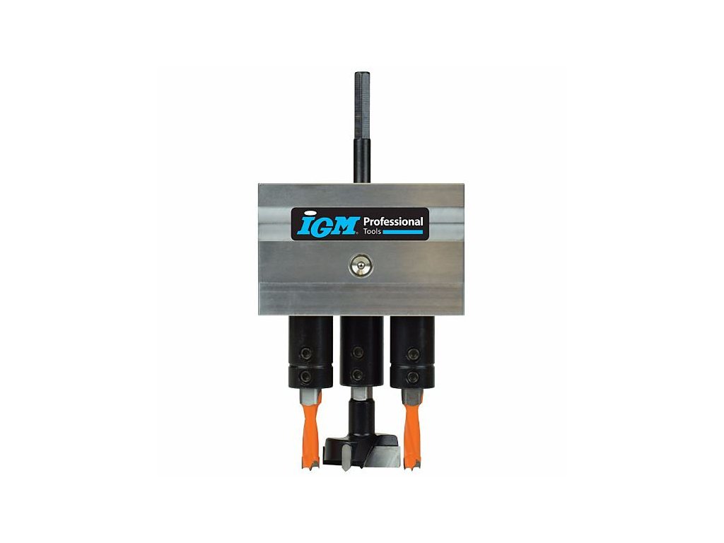 IGM Professional univerzálna vŕtacia hlava – revolučný vŕtací prípravok sa skladá zo stojana a 8 typov vŕtacích hláv, ktoré sa dajú na stojan namontovať. Môžete tak vŕtať otvory pre závesy Hettich, Blum, Mepla, Grass, FGV, pre malé závesy 26 mm, pre okenné kľučky, alebo použiť hlavu s 5 vretenami s rozstupom 32 mm pre vŕtanie dier pre kolíky, či nosiče políc. Použitie s ručnou vŕtačkou alebo na stojanových vŕtačkách. Pre mazanie použite olej Mobil SHC100.