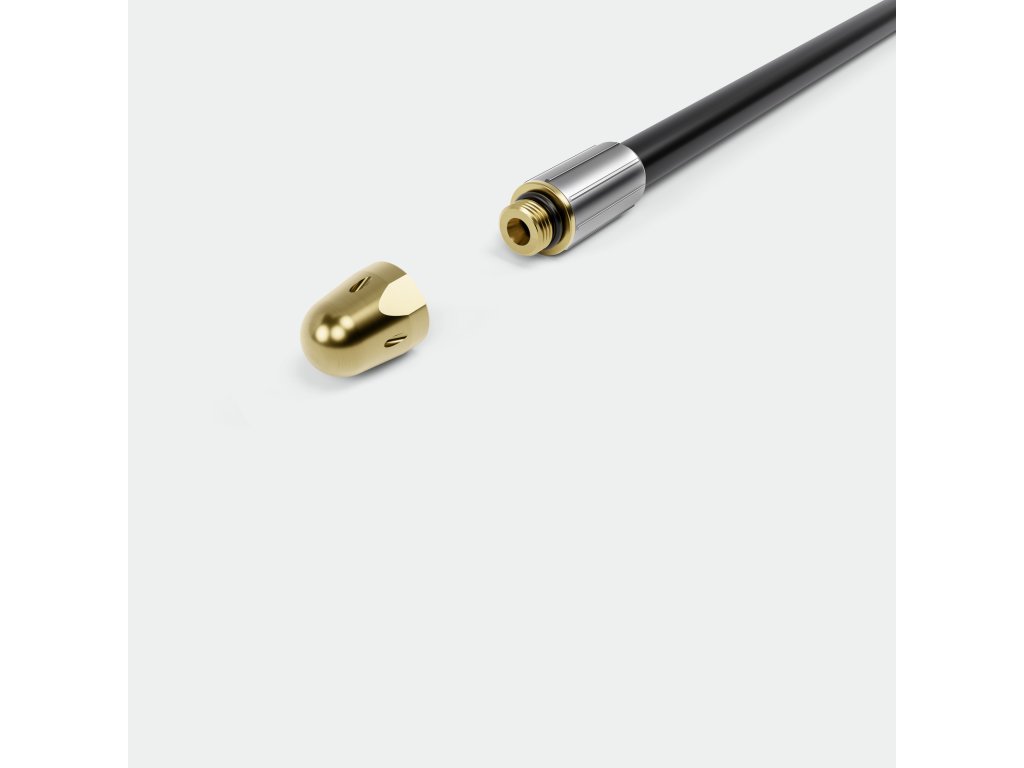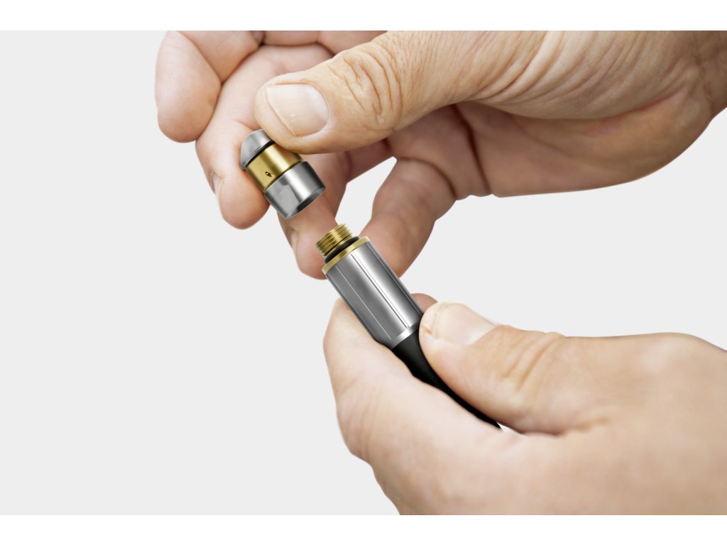 Jednoduchá výmena trysiek. Tryska s výkonným posuvom, ideálna na čistenie zvodov a odstraňovanie upchatia. Otočná tryska s čistiacim účinkom 360° – na výkonné udržiavacie čistenie vnútra potrubí, aby sa zabránilo upchatiu