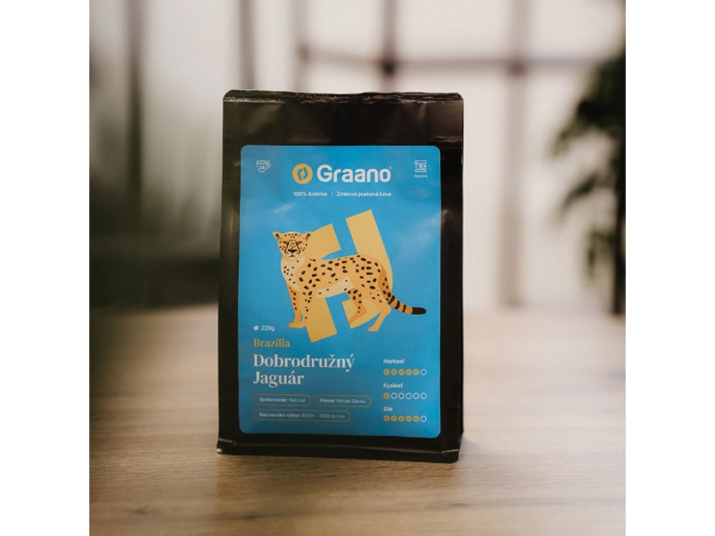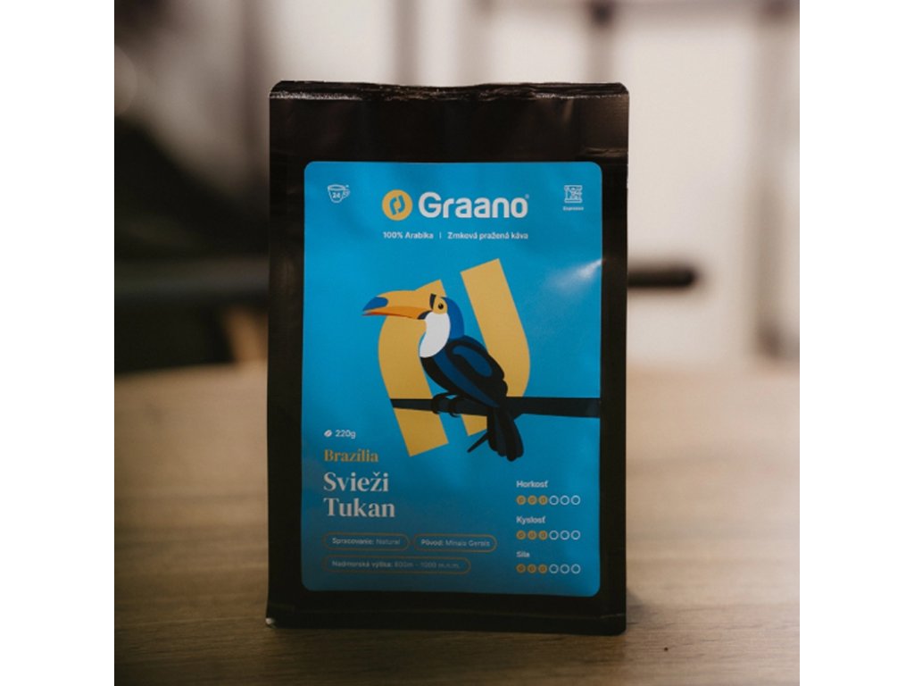 Zrnková káva, pražená na území Slovenska. Výrobca: Graano s.r.o