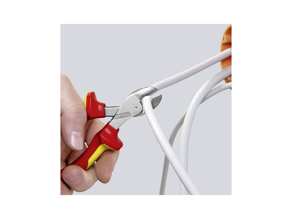 Presne odstrihne tie najjemnejšie vodiče, ako aj viacžilové káble a tvrdý klavírny drôt. Výkonné, ľahké a univerzálne. Vysoký výkon pri rezaní s malým úsilím vďaka optimálnej koordinácii uhla reznej hrany a prevodového pomeru. Pretlačovací kĺb: maximálna stabilita pri nízkej hmotnosti. Kĺbová náprava s dvojitými ložiskami pre ťažké a trvalé namáhanie. Veľká šírka otvoru pre hrubšie káble. Presný strih aj s jemnými medenými drôtmi. Kompaktný dizajn šetriaci hmotnosť. Univerzálne použiteľné pri montáži, údržbe a výrobe. O 40% menej námahy v porovnaní so štandardnými bočnými frézami rovnakej dĺžky. Vysoko výkonná oceľ chróm-vanádová, kovaná, viacstupňová kalená olejom