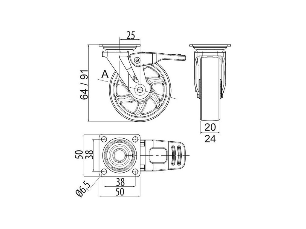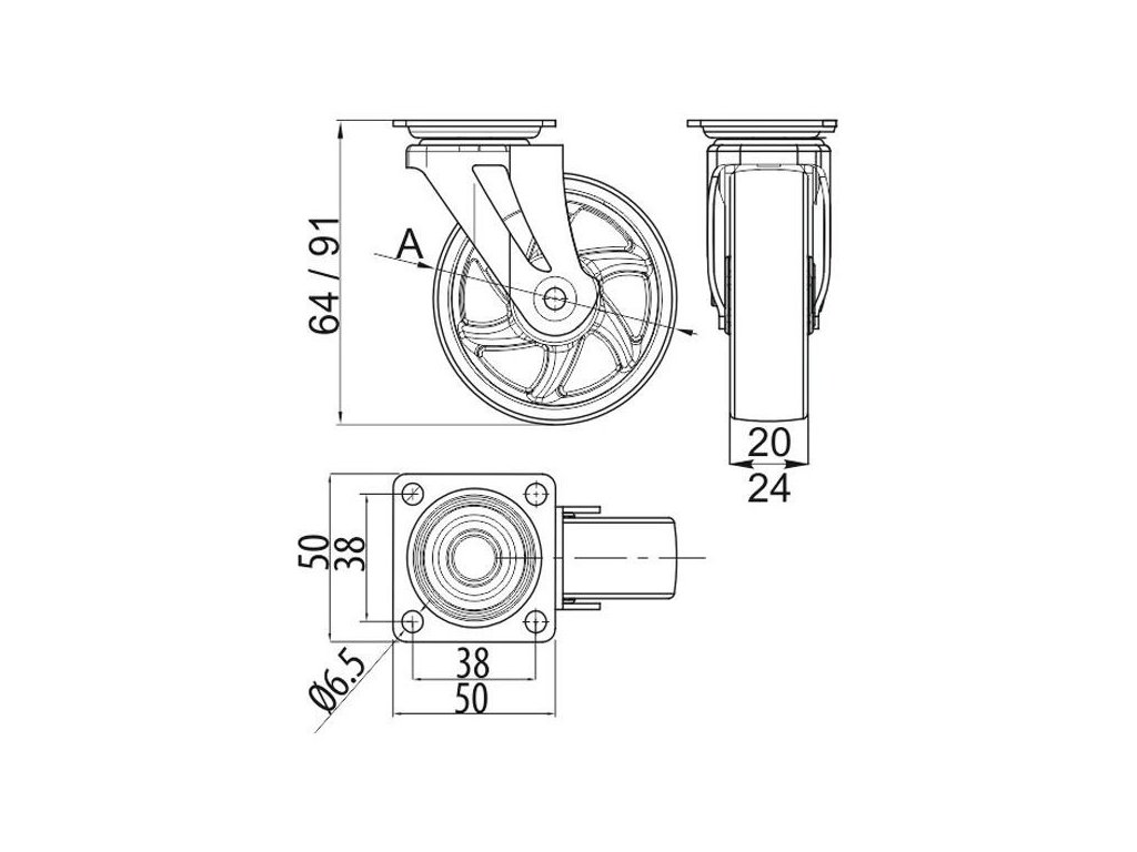 Koliesko nábytkové SHIFT 75 mm otočné, číre