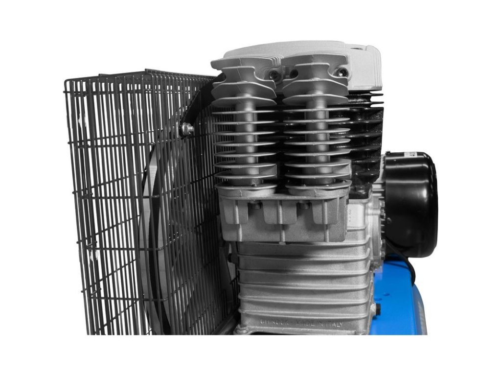 Dvojstupňový dvojvalcový kompresor s olejovým mazaním, s remeňovým pohonom. Tlakový spínač Condor, manometer tlaku v nádobe a manometer pracovného tlaku, redukčný ventil a odlučovač vody, 3 spojky na stlačený vzduch, 3 dochladzovače, spätný ventil, vypúšťací ventil na kondenzát. Bezpečnostný ventil, vzduchový filter, ochrana proti preťaženiu. Dve otočné kolieska, plastové kolesá, prepravná rukoväť.