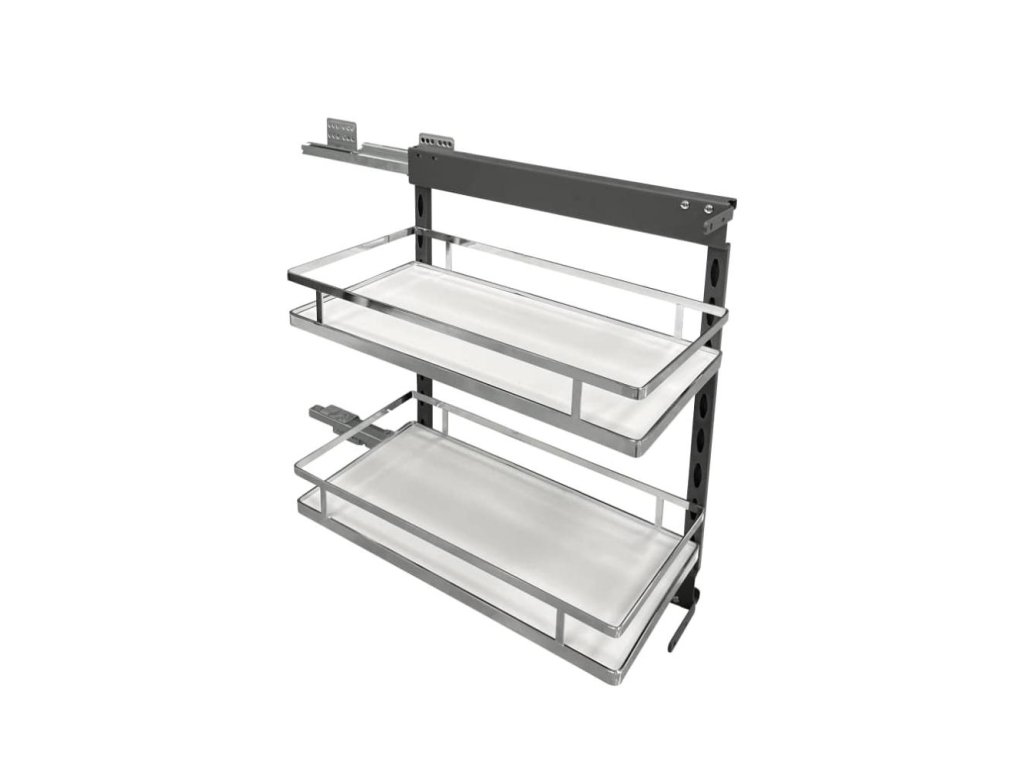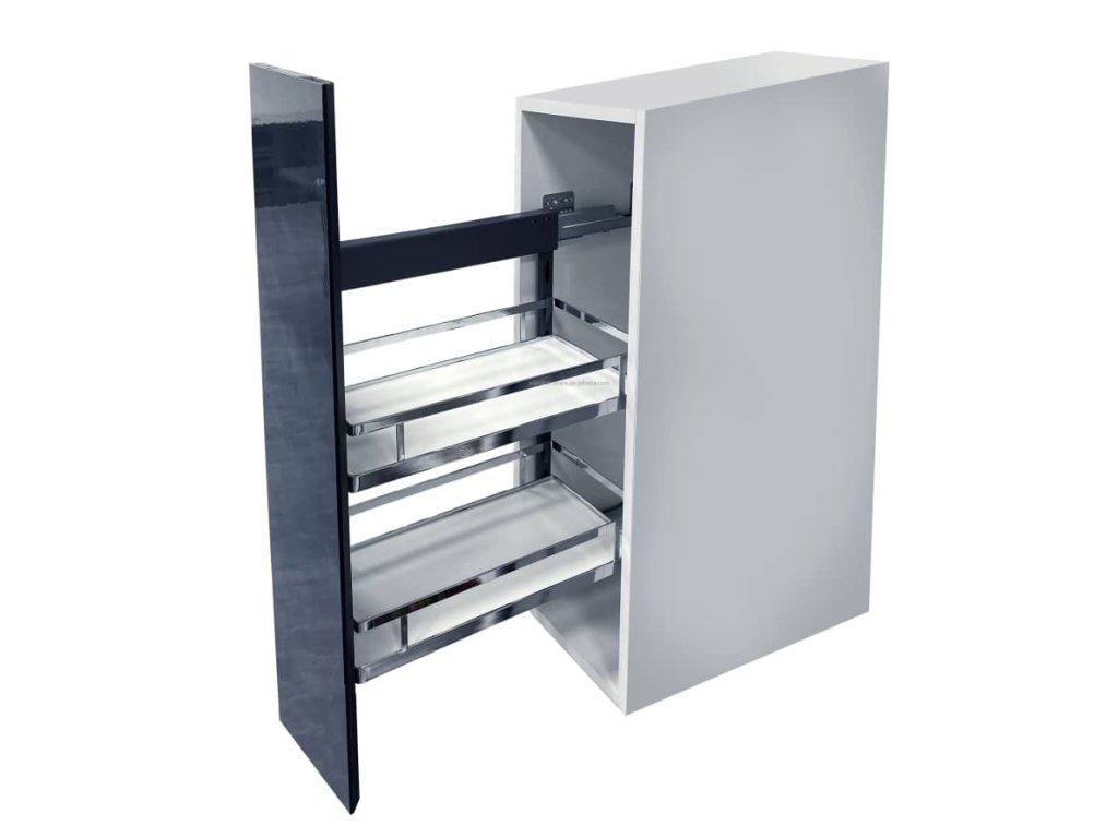 Poličky z kvalitného dreva, bočnicami z lesklých relingov a protišmykovou podložkou zaručujú nielen luxusný dizajn, ale najmä kvalitu. Nastaviteľnosť výšky poličiek zaručuje, že viete vytvoriť priestor pre malé a vysoké predmety. Výsuvný dizajn vám umožní plný prístup k zadnej časti. Mechanizmus SOFTCLOSE zaisťuje hladký chod a zabraňuje zabuchnutiu dvierok.