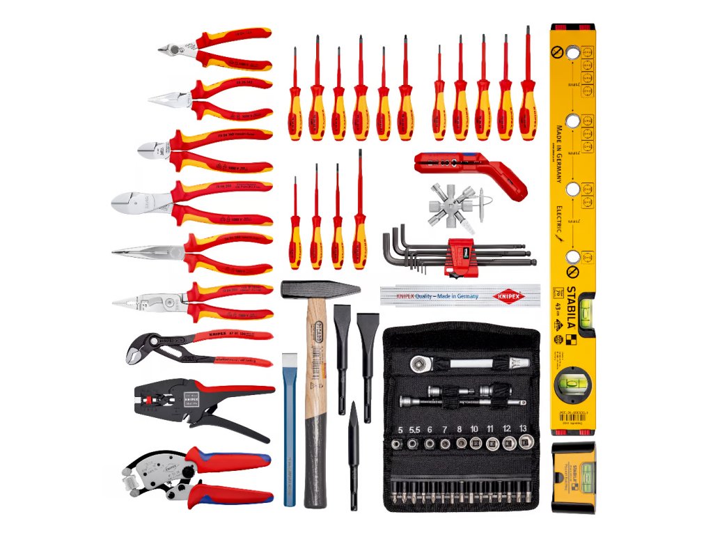 - Vybavené 27 kusmi náradia KNIPEX, celkovo 68 kusov značkového náradia, niektoré VDE testované podľa DIN EN 60900