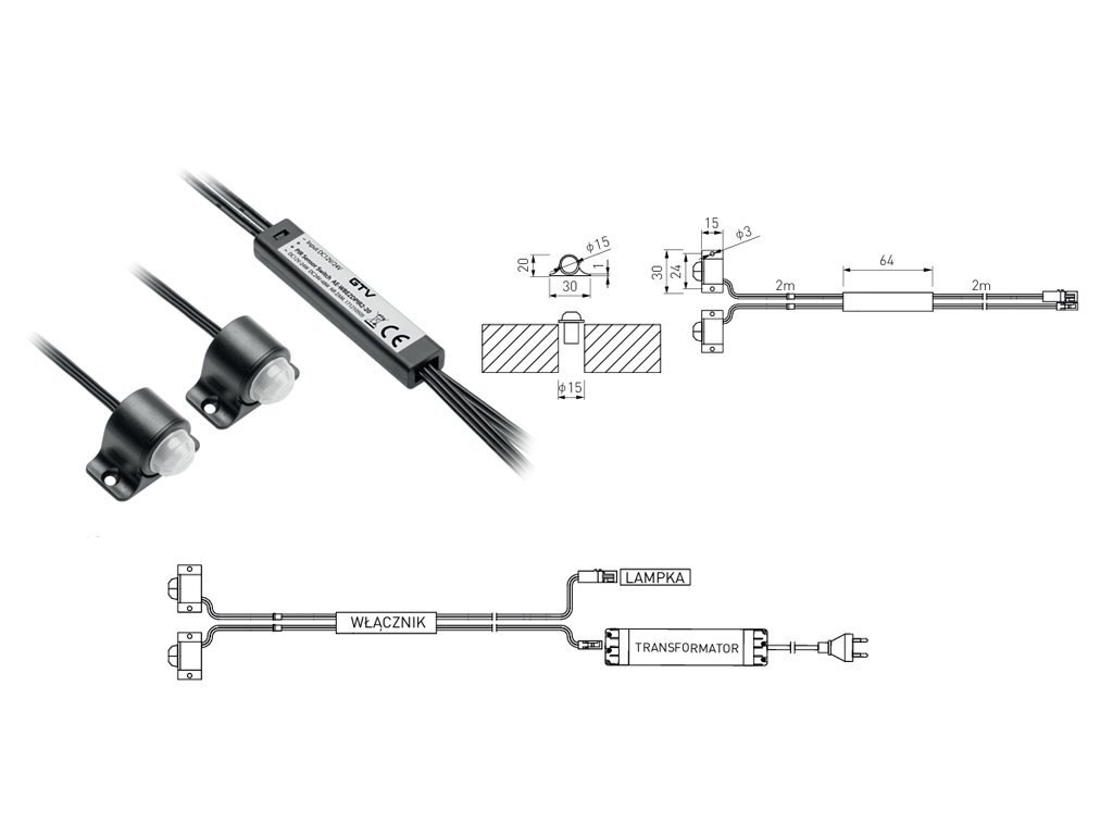GTV Pohybový senzor PIR 2 pre LED svetlo 12V/24V /54035-2/
