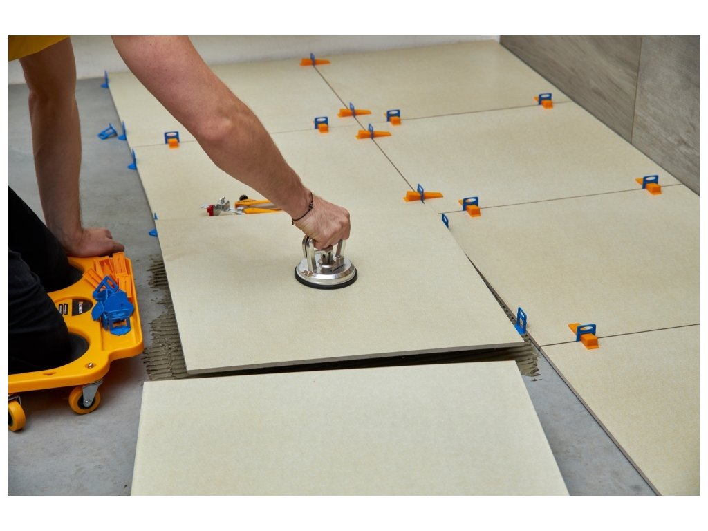 Vhodná pre časté používanie. Výborný pomocník pre akýkoľvek rozmer dlažby a obkladov (napr. 30 x 30 cm alebo 120 ×60 cm alebo 100×100 cm a pod.) Pri veľkom rozmere dlaždíc, odporúčame použiť dve jednodielne hliníkové prísavky.