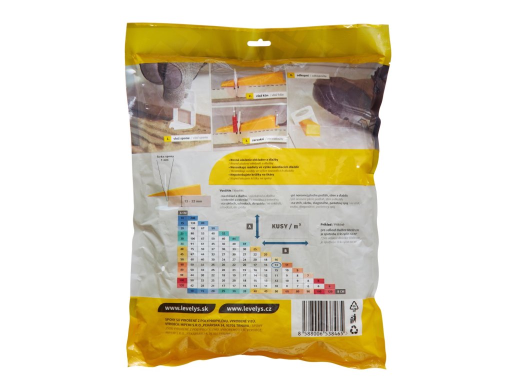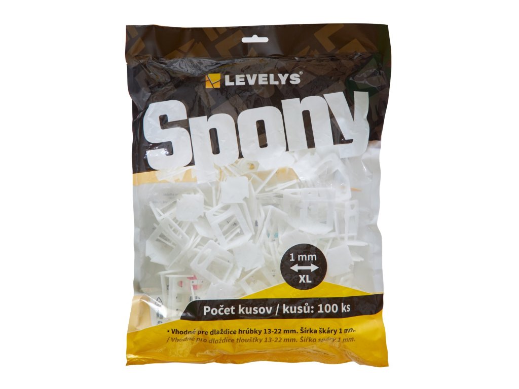 Iba v tomto balení v balení po 100 ks nájdete leveling spony 1 mm XL značky LEVELYS. LEVELYS je celoeurópsky certifikovaná značka.
