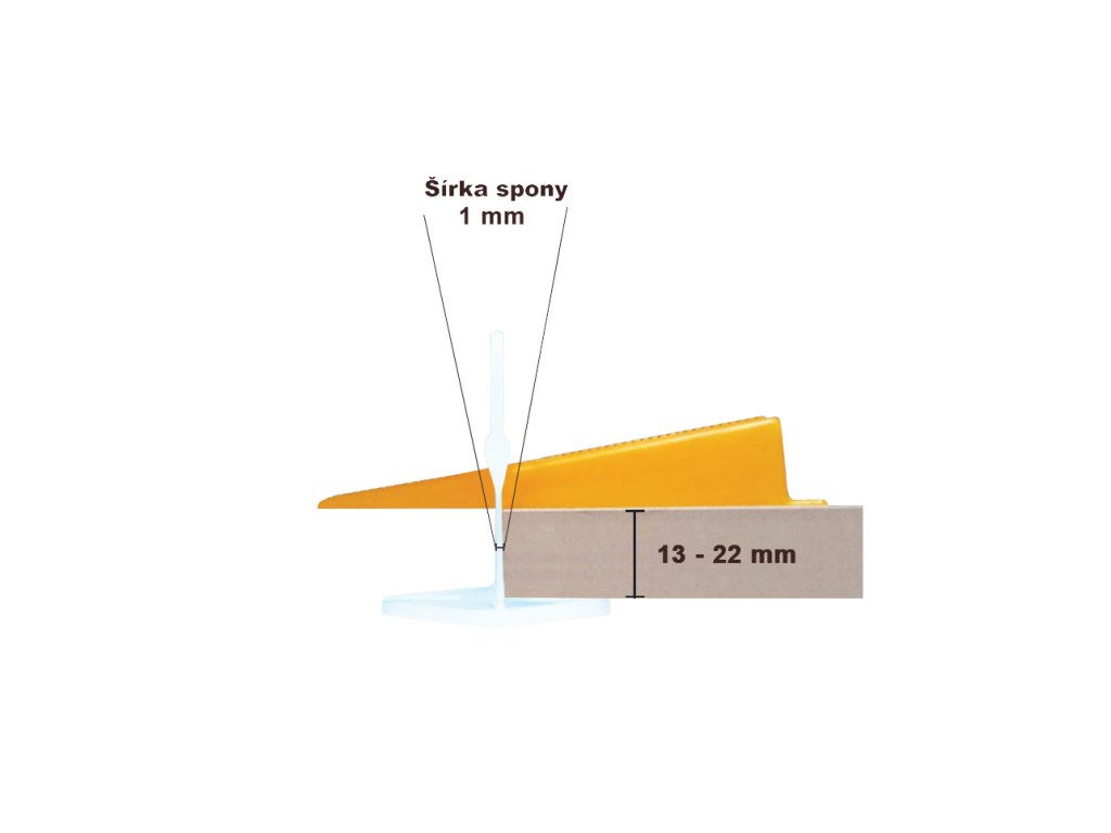 Tieto spony sú náhradou za klasické krížiky na dlažbu a ich použitie je vhodné pre dlažbu alebo obklad hrúbky od 13 až 22 mm. Pri svorke s hrúbkou 1 mm bude škára medzi dlaždicami taktiež 1 mm, no ak chcete docieliť väčší rozptyl (šírku špáry/škáry), môžete použiť na vymedzenie Krížiky.