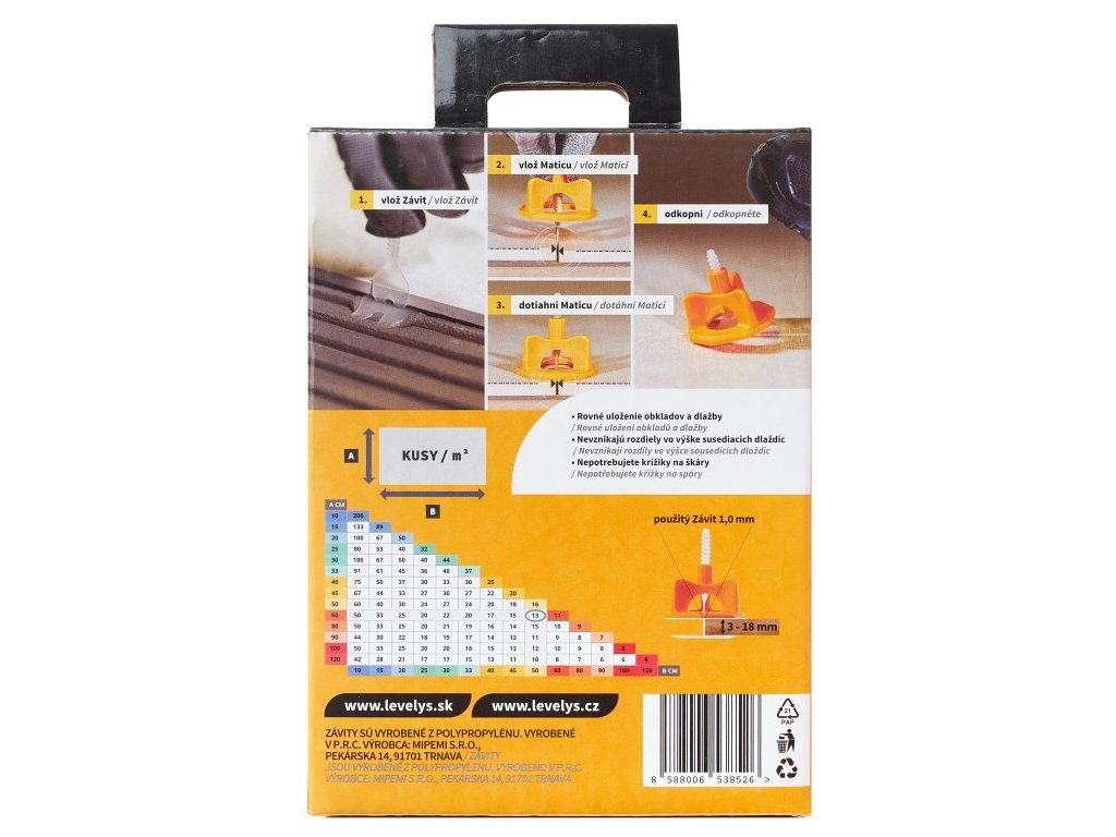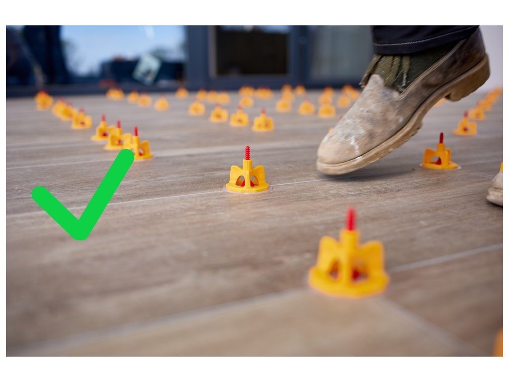 - Nepotrebujete Krížiky na škáry – Krížiky sme nahradili Závitmi, ktoré spolu s Maticou po dotiahnutí zafixujú dlaždice v jednej polohe a udržujú požadovanú šírku škáry.