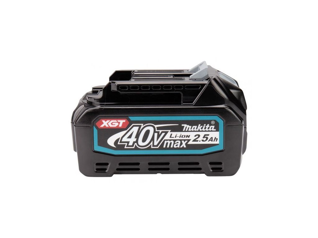 XGT 40 V Max Li-ion batéria s kapacitou 4,0 Ah. Batéria je vybavená indikátorom LED, ktorý zobrazuje stav batérii. Stroje, batérie a nabíjačka platformy XGT sú štandardne vybavené elektronikou, aby mohli navzájom komunikovať. Nabíjačka dáva batérii optimálne nabíjanie v závislosti od stavu batérie. V kombinácii s rýchlou nabíjačkou DC40RA je batéria úplne nabitá za 45 minút. Zariadenie tiež priamo reaguje na stav batérie. V závislosti od stavu batérie je napájanie stroja optimalizované. Batéria je navyše skonštruovaná tak, aby odolala drsným podmienkam prostredia, ako je voda a prach. Majú robustnú konštrukciu, sú chránené proti prachu a majú dizajn odolný voči striekajúcej vode.