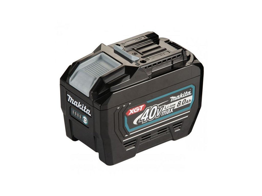 XGT 40 V Max Li-ion batéria s kapacitou 8,0 Ah. Batéria je vybavená indikátorom LED, ktorý zobrazuje stav batérii. Stroje, batérie a nabíjačka platformy XGT sú štandardne vybavené elektronikou, aby mohli navzájom komunikovať. Nabíjačka dáva batérii optimálne nabíjanie v závislosti od stavu batérie. V kombinácii s rýchlou nabíjačkou DC40RA je batéria na 100 % nabitá za 76 a na 80 % 60 minút . Zariadenie tiež priamo reaguje na stav batérie. V závislosti od stavu batérie je napájanie stroja optimalizované. Batéria je navyše skonštruovaná tak, aby odolala drsným podmienkam prostredia, ako je voda a prach, tieda istenia Wet Guard/ IPX4. Majú robustnú konštrukciu, sú chránené proti prachu a majú dizajn odolný voči striekajúcej vode.