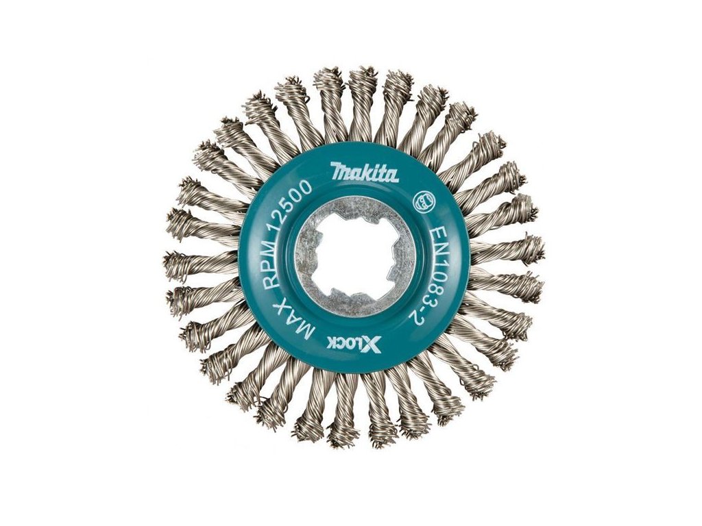 - Okrúhla kefa Makita 115 mm so skrúteným, jemne zauzleným drôtom s priemerom 0,5 mm, Počet vretien 30, s pripojením X-LOCK. Vhodné len pre stroje s pripojením X-LOCK.