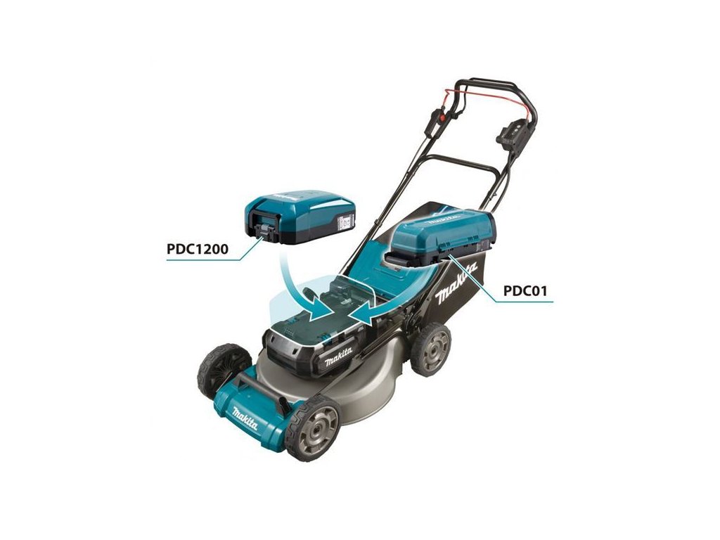 - Používa sa v kombinácii s prenosným akumulátorom (PDC01 alebo PDC1200). Zdroj sa priamo uchytáva na kosačku.