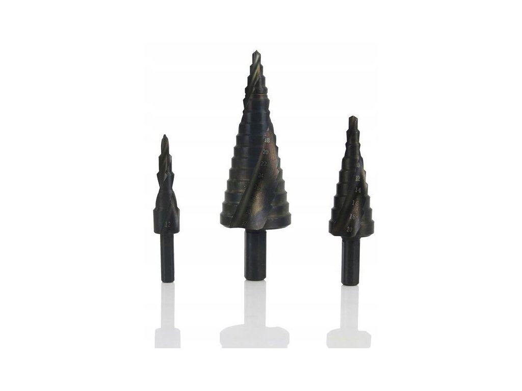 MAR-POL Sada stupňovitých vrtákov 4-12, 4-20, 4-32 mm do plechu RAPID, špirálová drážka, M22345