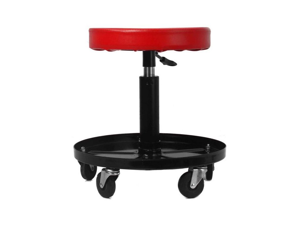 Stolička do dielne, výškovo nastaviteľná, mimoriadne pohodlná a mobilná vďaka 4 kolieskam.Regulovaná výška zabezpečí pohodlné sedenie a vďaka tanieru na kľúče máte svoje náradie ľahko dostupné.