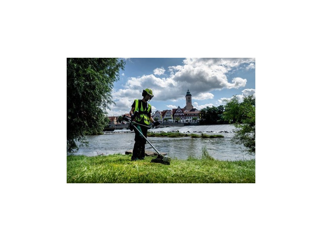- Tichý akumulátorový krovinorez s prestaviteľnou obojručnou rukoväťou na komfortnú prácu na väčších plochách