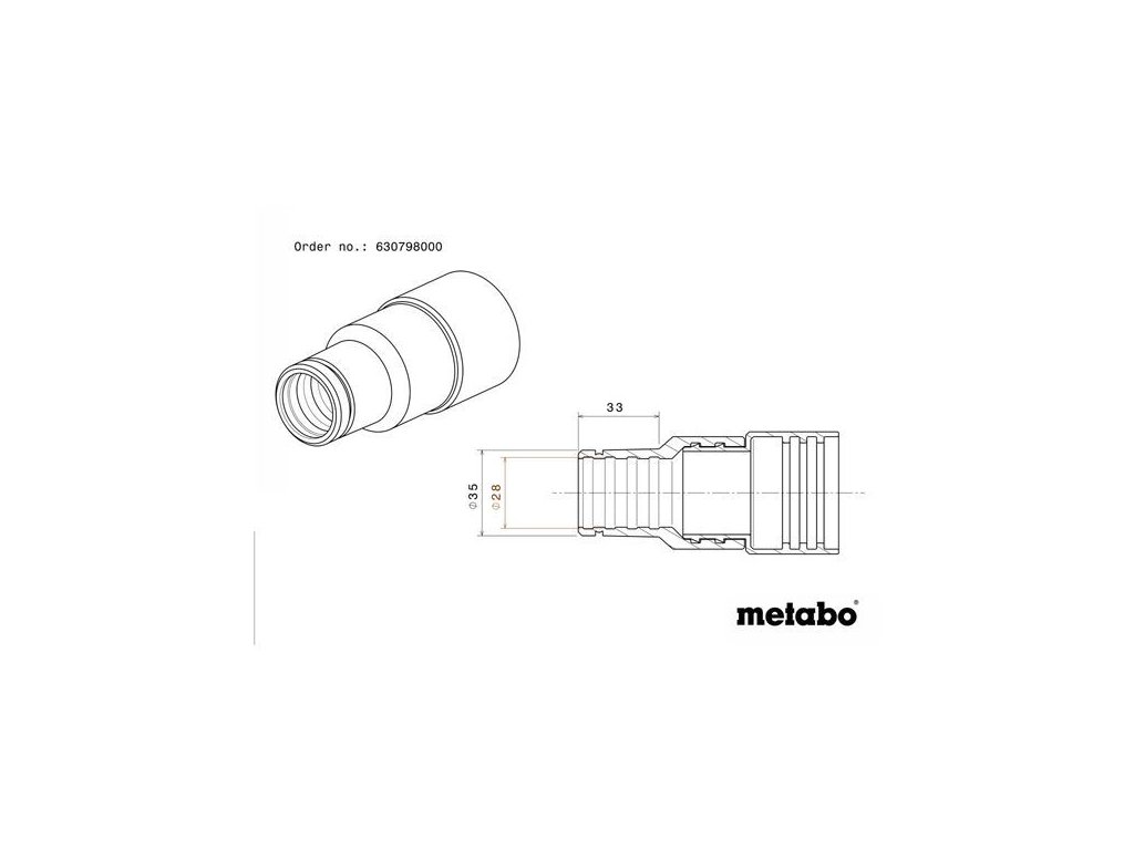 - Univerzálne prípojné hrdlo vhodné pre väčšinu ručne vedených elektrických náradí. Štandardné prípojné hrdlo sacej hadice Metabo.