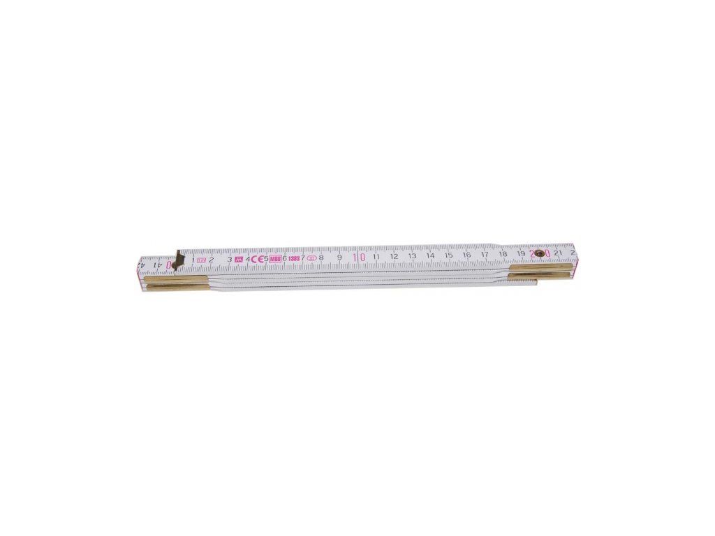 Skladací meter z bukového dreva. Šetrný k životnému prostrediu - vodou riedená farba. Viac vrstvová povrchová úprava, vrchná vrstva UV lak, odolná proti udretiu a zaškrabnutiu, odolná proti poveternostným podmienkam. Pevné ocelové spoje mazané tukom, mosadzné kovanie, frézované konce dielov. Certifikát presnosti EG-lll.