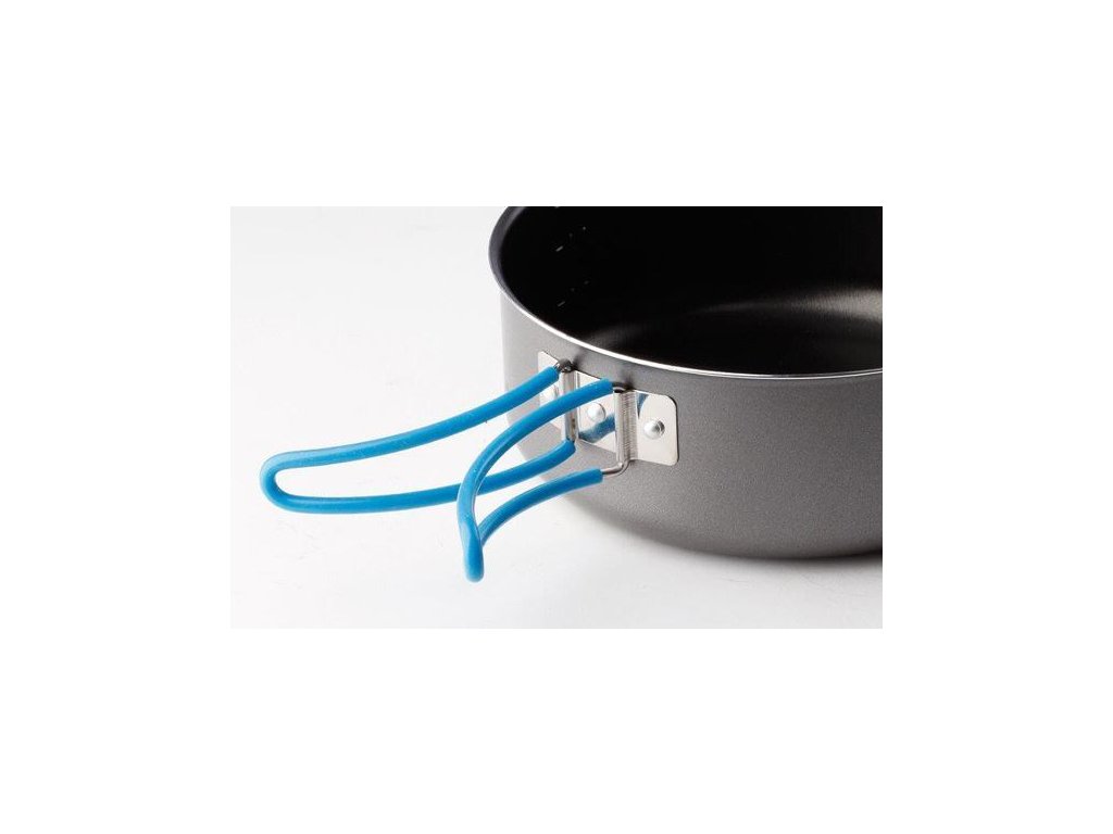 Campingová sada riadu s nepriľnavým povrchom PTFE-vyrobená z pokrytého hliníka.