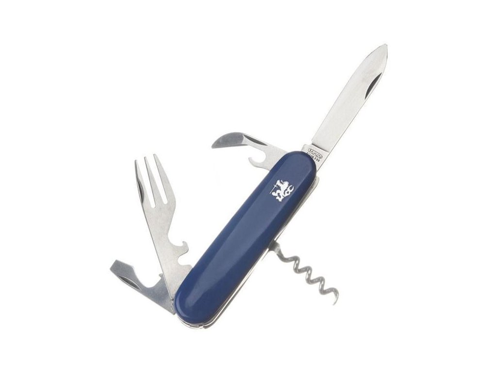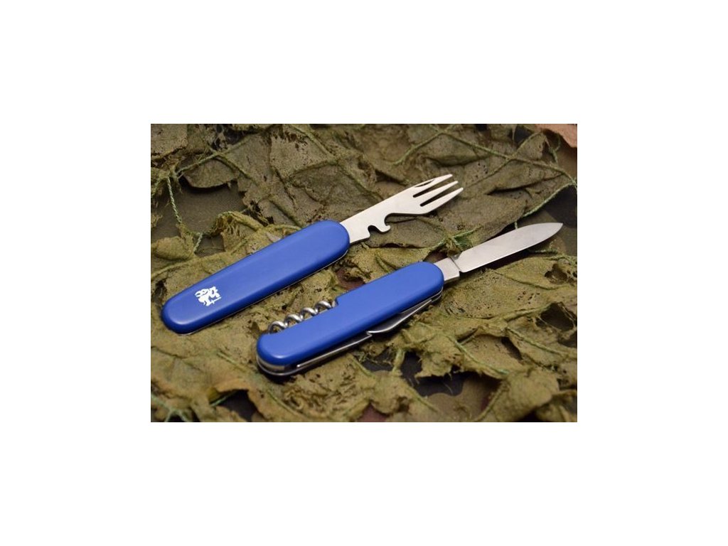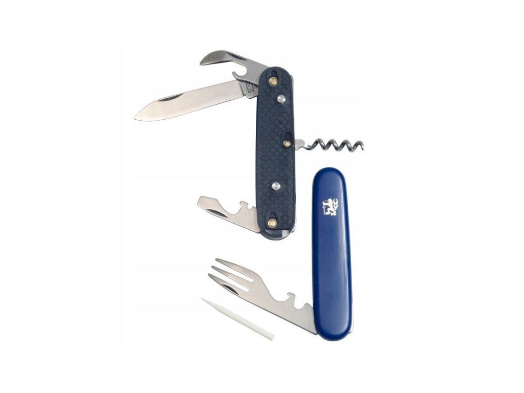 Piknikový vreckový nôž Mikov 101-NH-6P PIKNIK má originálnu funkciu, že jedným pohybom ho možno rozdeliť na dve časti a použiť ako príbor. Čepeľ je z ocele 420 a rukoväť z modrého plastu s motívom českého leva. Okrem čepele má otvárač na konzervy a fľaše, odstraňovač izolácie drôtov, skrutkovač, vidličku, vývrtku a špáradlo.