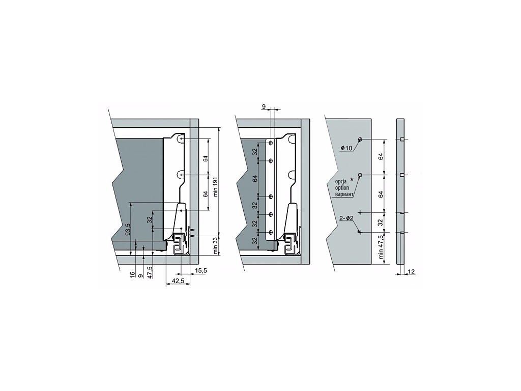 • skrytý výsuv s ľahkým a tichým chodom, s tlmením a doťahom