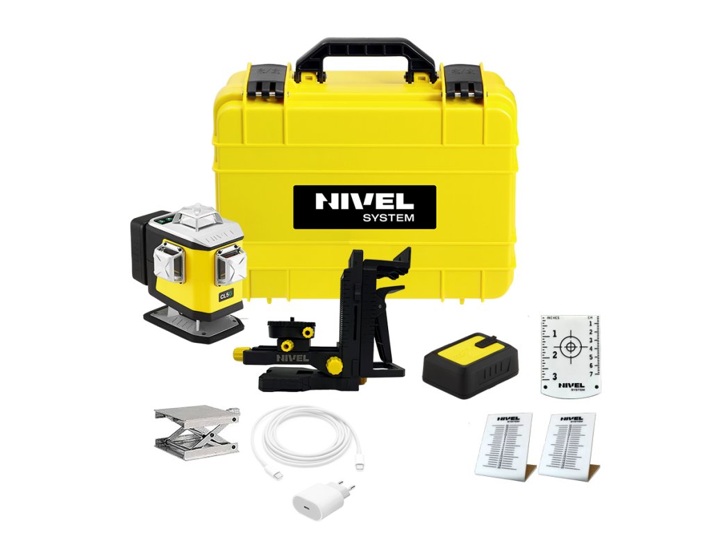 NIVEL-S Krížový lasér CL5G zelený SET + statív SJJ-M1 + prijímač CLS5 + lata LS24