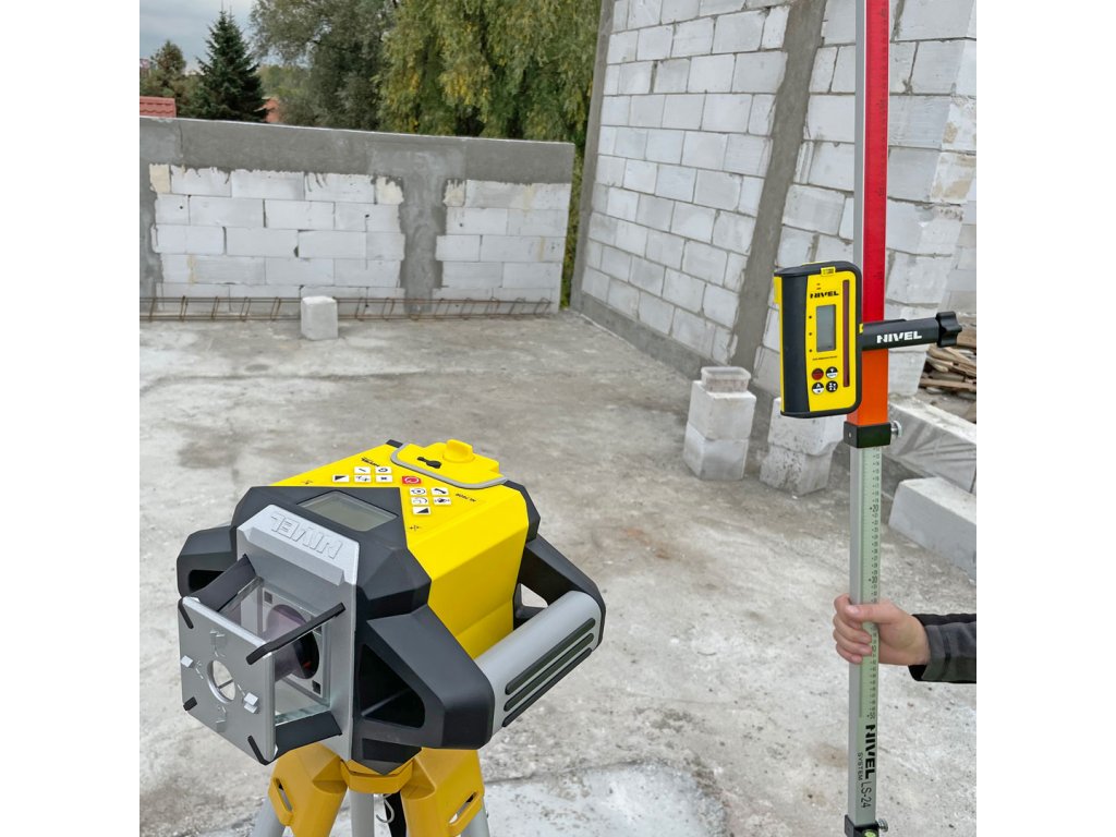 Rotačný laser Nivel System NL740R DIGITAL je všestranný a multifunkčný prístroj pre vonkajšie a vnútorné práce. Tento model je vybavený veľmi dobre viditeľným červeným lúčom. Prístroj je vyrobený na základe osvedčenej a efektívnej laserovej technológie od NIVEL SYSTEM, ktorá zaisťuje vysokú presnosť meraní. Prístroj určuje horizontálnu rovinu (môže byť naklonená v 2 osiach), vertikálnu rovinu alebo laserovú olovnicu. Prístroj je vybavený systémom automatického zacielenia laserového lúča. S touto funkciou je jednoduchšie nastaviť sklony (horizontálne práce) a hľadať smer (vertikálne práce). Rozsah lúča umožňuje práce aj na dlhých úsekoch (rozsah 700 m), v náročných terénnych podmienkach – prístroj je rýchly a odolný voči vibráciám. NL740R DIGITAL je štandardne dodávaný s digitálnym prijímačom, na ktorom sa zobrazujú číselné výškové rozdiely. To výrazne uľahčuje a urýchľuje merania. Prístroj je vybavený intuitívnym rozhraním s LCD displejom. Diaľková komunikácia prebieha pomocou rádiového diaľkového ovládača.