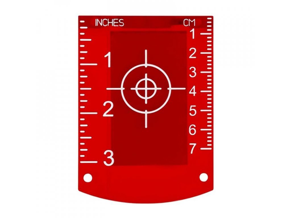 Laserový terč je určený pre zviditeľnenie červeného laserového lúča pri slabej odrazovosti plôch (napr. svetlé priestory, sklo). Terče majú zo spodnej časti magnety pre lepšie uchytenie o konštrukcie.