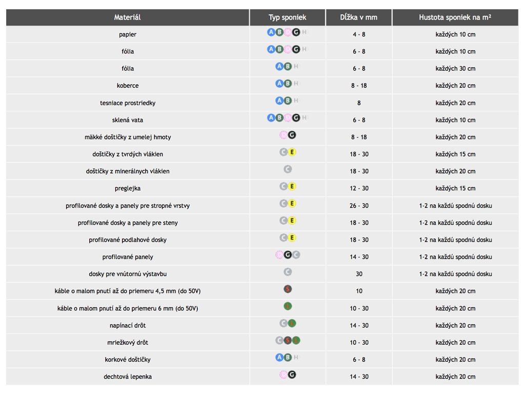 Konzistencia a kvalita upevňovaného materiálu a materiálového podkladu určujú výber sponkovačiek a sponiek.