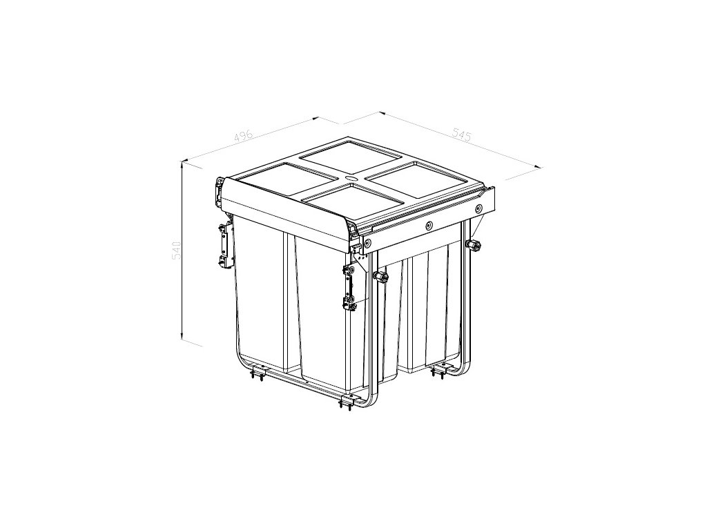 ML SYSTEMS Vstavaný odpadkový kôš do "60" skrinky s prichytením čela - 3 nádoby /ML-600-ST-3/