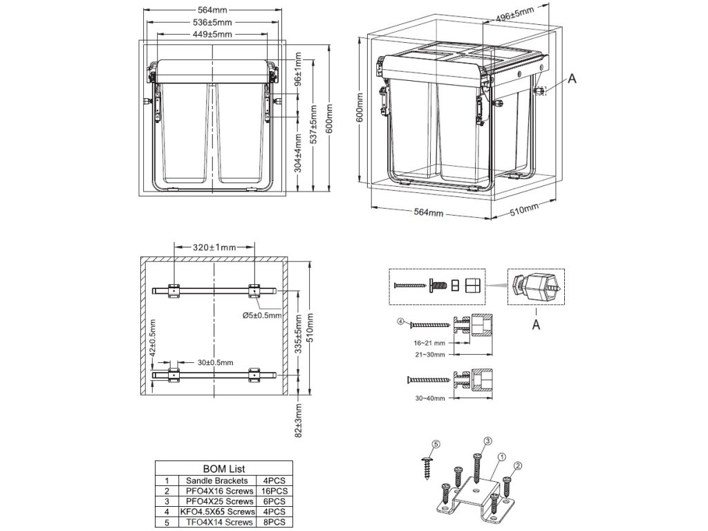 ML Vstavaný odpadkový kôš 600mm 2x17L+1x34L /ML-600-ST-3/