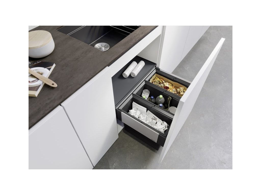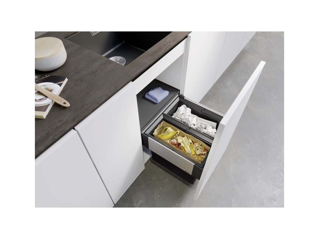 Ponúkame sortery s funkčnými detailami pre komfortné ovládanie, dokonalé využitie priestoru a optimálnu hygienu. V ponuke sú modely pre zabudovanie do skrinky, v niekoľkých veľkostiach a do rôznych typov skriniek. Košový systém je možné namontovať ako výsuvný, alebo z vnútornej strany otváravých dvierok, do rohových skriniek alebo priamo do pracovnej dosky. Šablóny, flexibilné pojazdy alebo otočný excenter pre upevnenie na dvierka podporujú rýchlu montáž – aj dodatočnú.