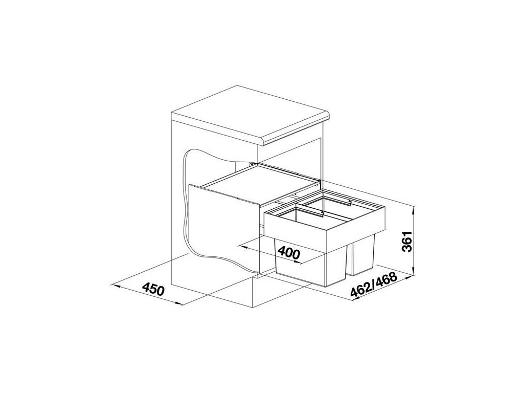 pri plánovaní treba zohľadniť výšku zabudovania košového systému, hĺbku drezu a z toho vyplývajúci min. rozmer pre spodnú skrinku
