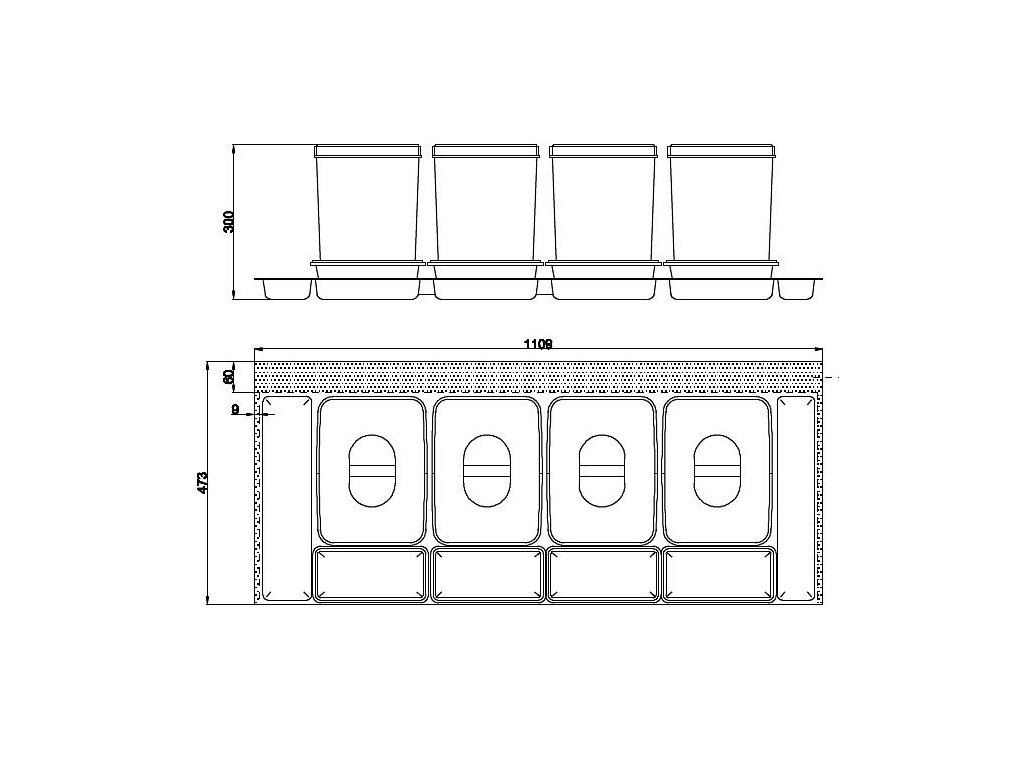 - zásuvka s dĺžkou L = 1109 mm a L = 450 mm (po oreze)