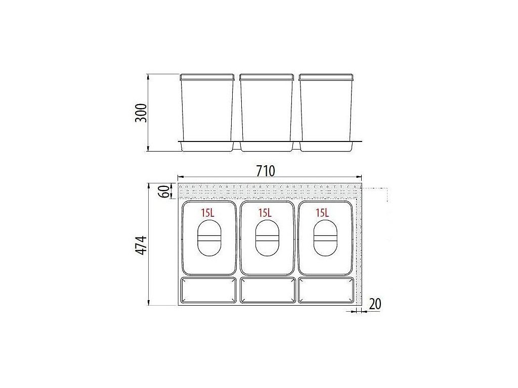 Odpadkový kôš MULTINO 800 3*15L 5570-2