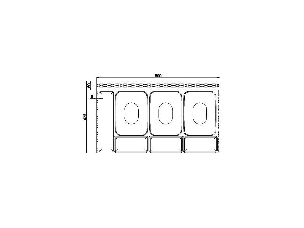 - zásuvka s dĺžkou L = 800 mm a L = 450 mm (po oreze)