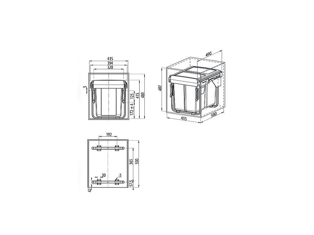 Odpadkový výsuvný kôš GTV 450 20l + 2 x 10L šedý 5563