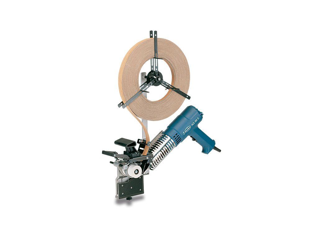 Ručná olepovačka hrán PVC a dyhy s predom naneseným lepidlom. Nastavenie vodítka umožňuje 4 spôsoby olepenia hrany. Možnosť olepovať tiež vnútornú stranu dverí a polodrážok (falc).