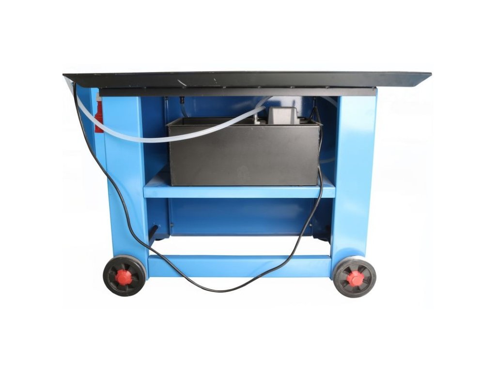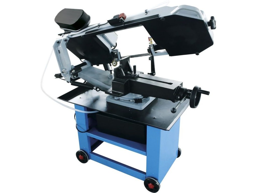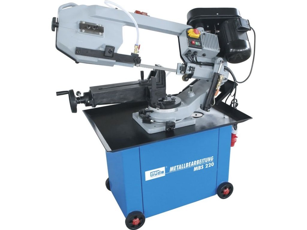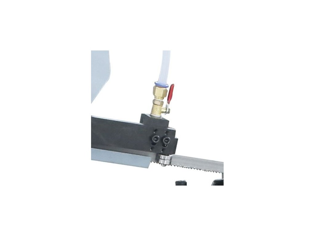 Pásová píla na kov s konštrukciou z liatiny. 10-násobné vedenie pílového pásu s guľôčkovými ložiskami. Rýchloupínací zverák s excentrickým upínacím systémom, zarážka obrobku, bimetalový pílový pás. Chladiace zariadenie, automatický koncový vypínač. Kefka na piliny. Otočný rám píly.