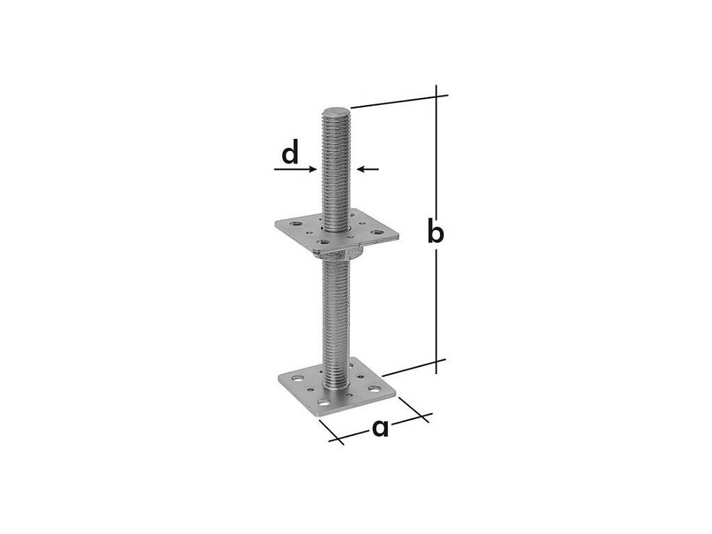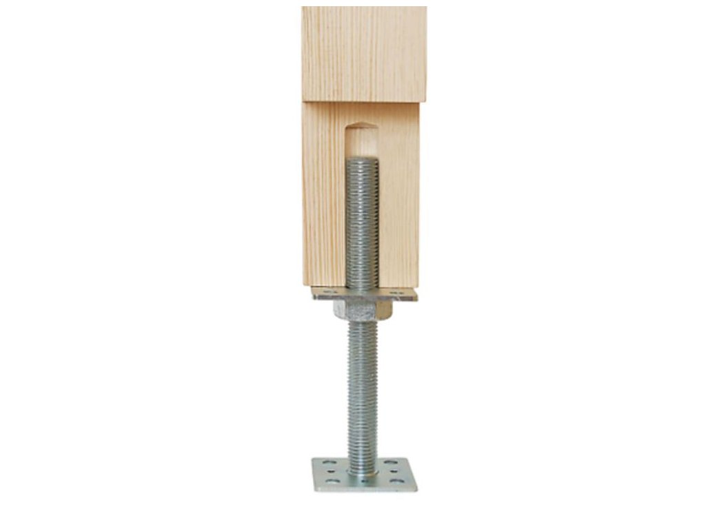 Zjednodušuje montáž drevených prvkov s betónom. Nastavenie umožňuje určiť výšku montovaného prvku.