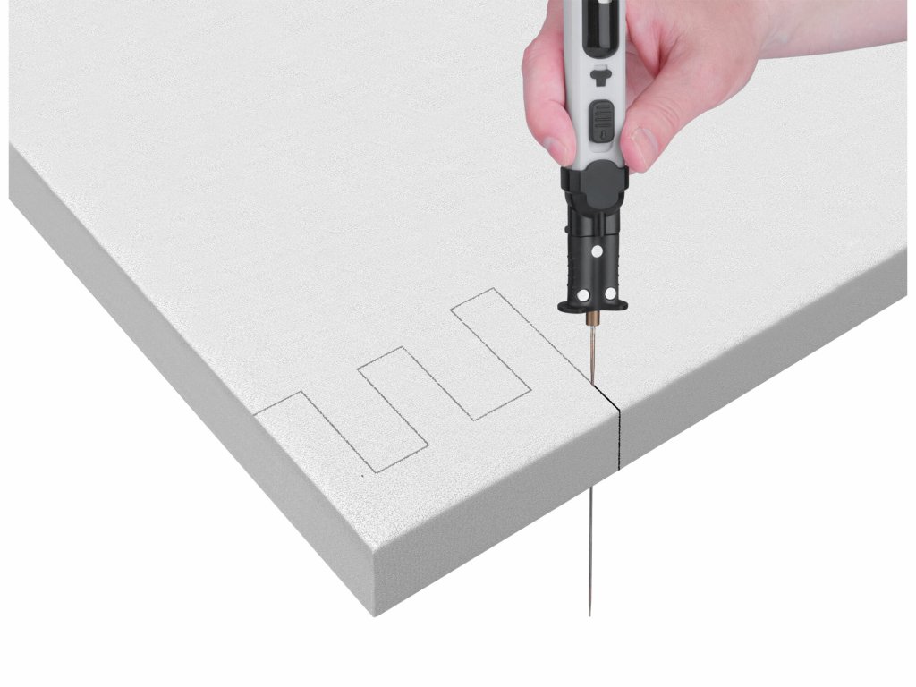 Akumulátorová rezačka so sadou rezacích nadstavcov je určená na skracovanie, vyrezávanie, drážkovanie a tvarovanie penových dosiek, ako je napr. penový polystyrén, penový polyetylén a pod. Môžete s ňou doma alebo v škole vytvárať drobné penové remeselné a kutilské projekty. Rezacia struna sa zahreje na 100°C za približne 12 sekúnd a na pracovnú teplotu 550°C približne za 30 sekúnd. Nástroj je vybavený vstavaným LED svetlom, ktoré zlepšuje viditeľnosť a presnosť pri rezaní aj za zhoršených svetelných podmienok. Struna na vidlici sa používa na jemné a presné vyrezávanie, napr. z hrubého polystyrénu. Rezací nôž je určený na vyrezávanie väčších tvarov v ploche alebo na skracovanie polystyrénu. Nôž tvaru “U” sa používa na dlabanie nepriechodných dutín v polystyréne. Spájkovací nástavec sa používa napr. ako pero na písanie textu alebo kreslenie do polystyrénu a tiež je možné použiť na spájkovanie plastov alebo po nasadení medených špičiek pre mäkké spájkovanie. Pre zjednodušenie práce je možné rezačku pomocou priloženého držiaka upnúť na stôl a potom mať obe ruky voľné na manipuláciu s materiálom. Nástroj sa nabíja pomocou štandardného USB-C kábla z akejkoľvek USB nabíjačky alebo počítača.