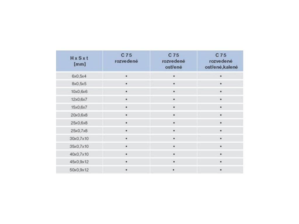 - Pilové pásy sú vyhotovené z kvalitnej nemeckej ocele C75 s tvrdosťou 38-44 HRc.