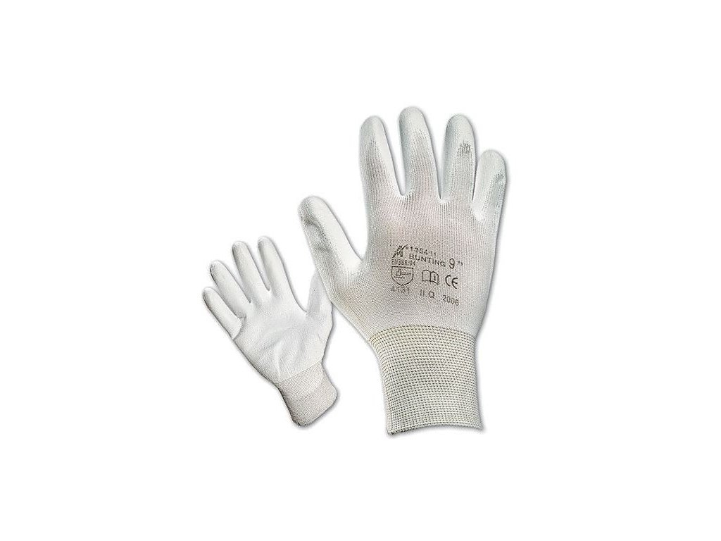 Pletené, bezšvové, nylonové rukavice s tenkou vrstvou polyuretánu v dlani a na prstoch a pružnou manžetou.