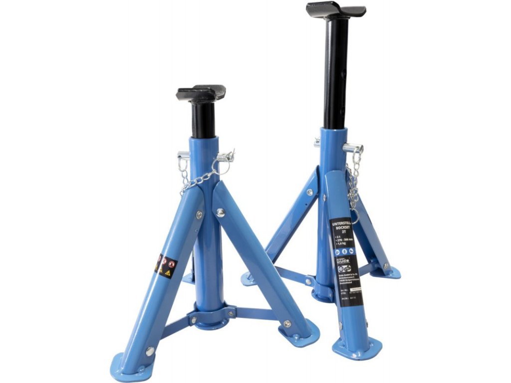 Podpery pod karosériu určené na zabezpečenie zdvihnutých vozidiel. Pevná oceľová konštrukcia, výškovo nastaviteľné, sklápacie, povrch lakovaný. V balení 1 pár (2 ks).